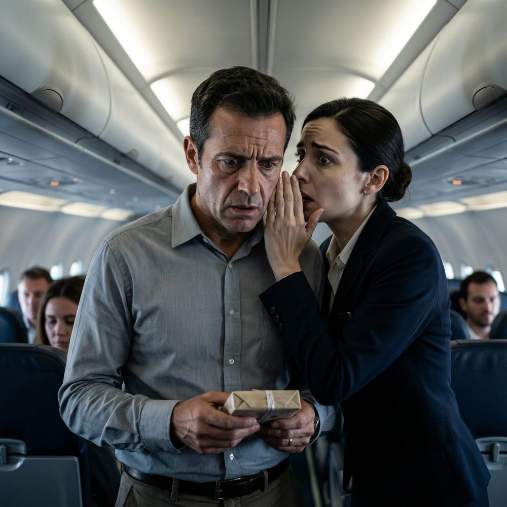 Cuando estaba buscando mi asiento, una azafata se acercó más de lo normal. Era joven, cabello oscuro recogido con demasiada rigidez. Se inclinó hacia mí y, sin mirarme a los ojos, me susurró: