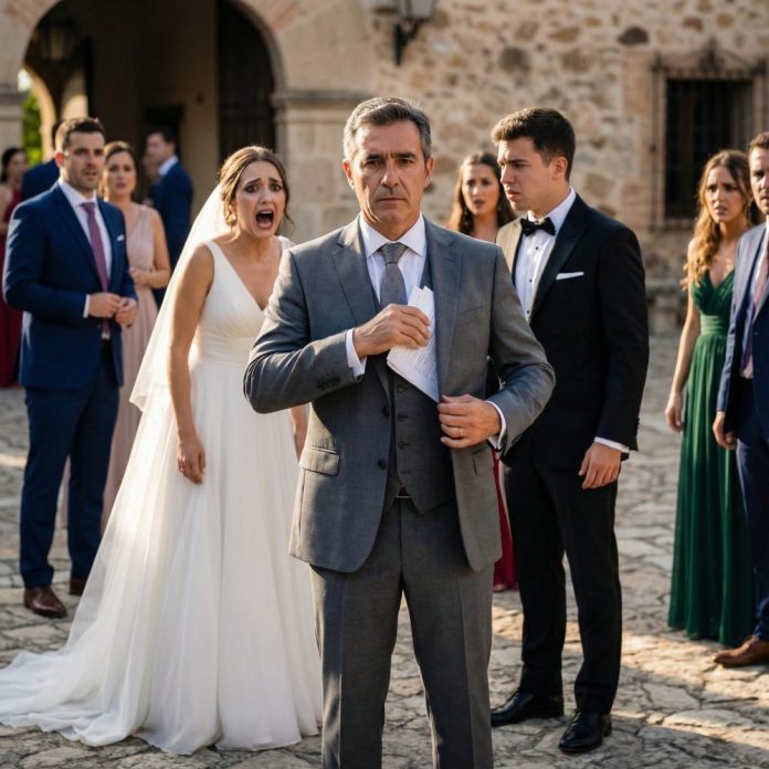 El sacerdote asintió. Algunos invitados abandonaron el lugar en silencio; otros se quedaron paralizados. Laura fue acompañada fuera por su familia, evitando miradas. Yo me senté, agotado, con una mezcla de culpa y alivio. Sabía que había salvado a mi hijo de una vida construida sobre mentiras, pero el precio era alto. El día que debía ser de celebración se había convertido en una herida abierta.