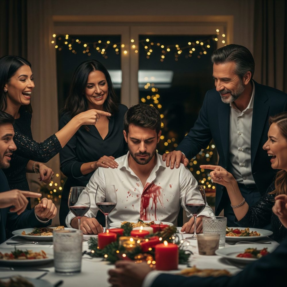Las risas estallaron alrededor de la mesa. Mi madre, nerviosa y quizás ya pasada de copas, levantó su copa y, en un gesto torpe, me lanzó vino encima de la camisa. Nadie se disculpó. Yo me quedé inmóvil, con el pecho apretado, sintiendo cómo la humillación me quemaba la cara.