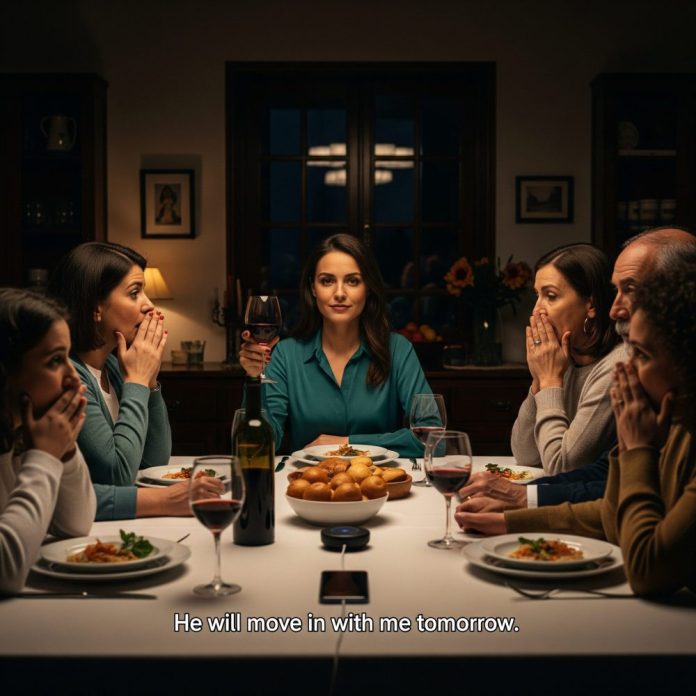 Justo en medio de nuestra cena familiar, sonó la llamada de ella. Su voz, llena de confianza, declaró sin temblar: “¡Él se mudará a vivir conmigo mañana!” El comedor quedó en silencio absoluto. Mi madre dejó el tenedor suspendido en el aire, mi hermano se aclaró la garganta sin saber a dónde mirar, y yo, con una calma que ni yo misma reconocí, levanté mi copa de vino, sonreí y respondí con la suavidad de quien conoce la verdad antes que nadie: “Perfecto… sus cosas ya fueron empacadas desde ayer.”