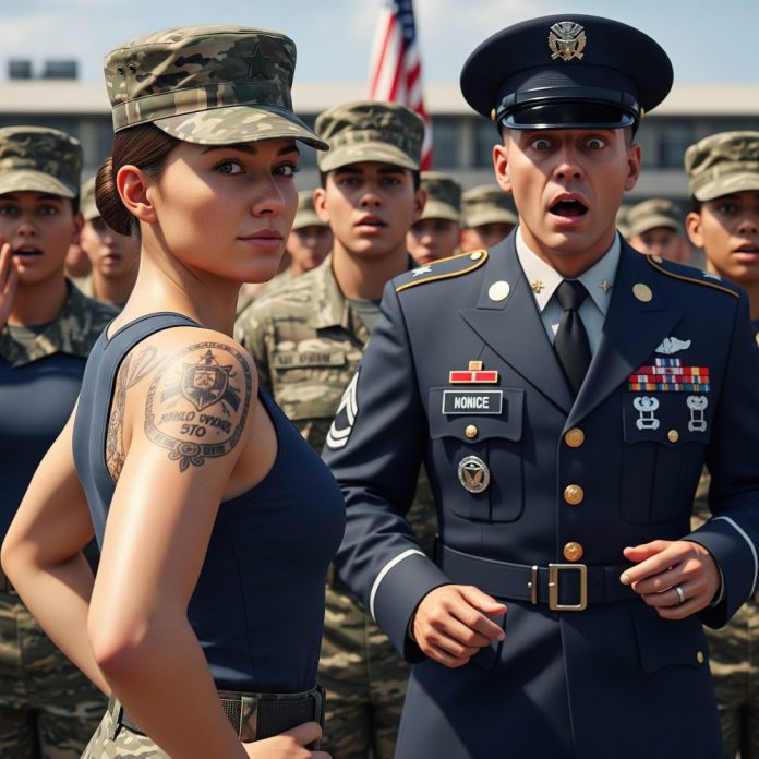 During our first inspection, the sun burned down on us as we stood at attention. Sweat crawled down my spine, slipping beneath my shirt, exposing the upper edge of the tattoo on my back—something I rarely thought about anymore. Something I never explained.