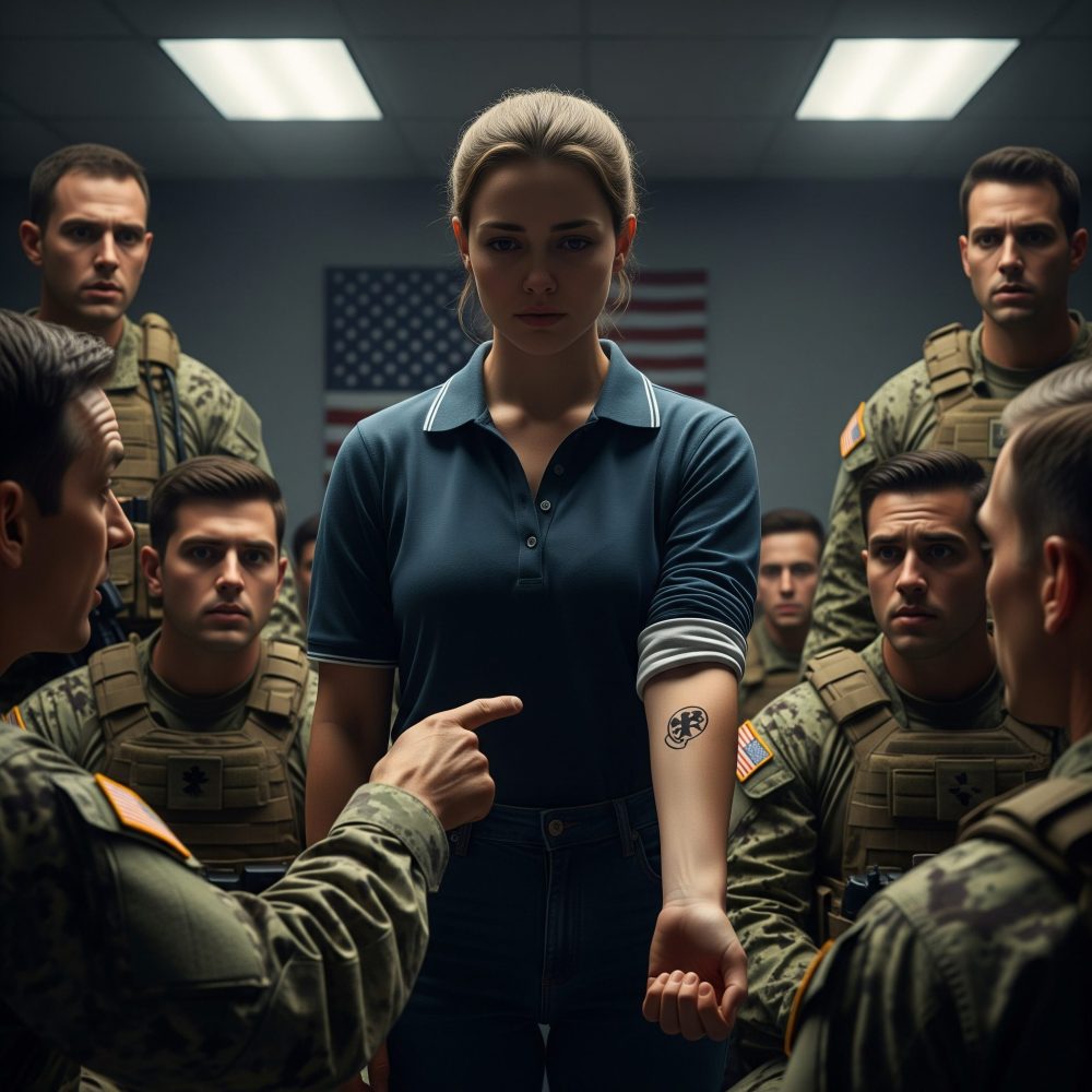 “Who authorized that insignia?” he roared, his voice trembling in a way that made every head snap forward.