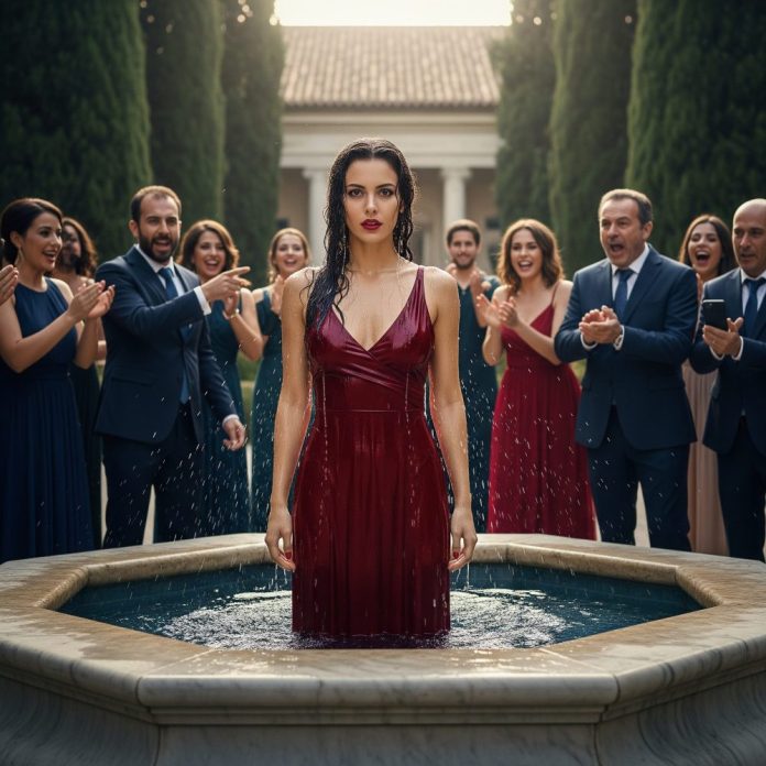 Salí de la fuente empapada y me alejé sin mirar atrás. Nadie me siguió. Nadie preguntó si estaba bien. Me refugié en el baño del hotel, me sequé lo mejor que pude y respiré hondo. Miré el reloj: faltaban veinte minutos.