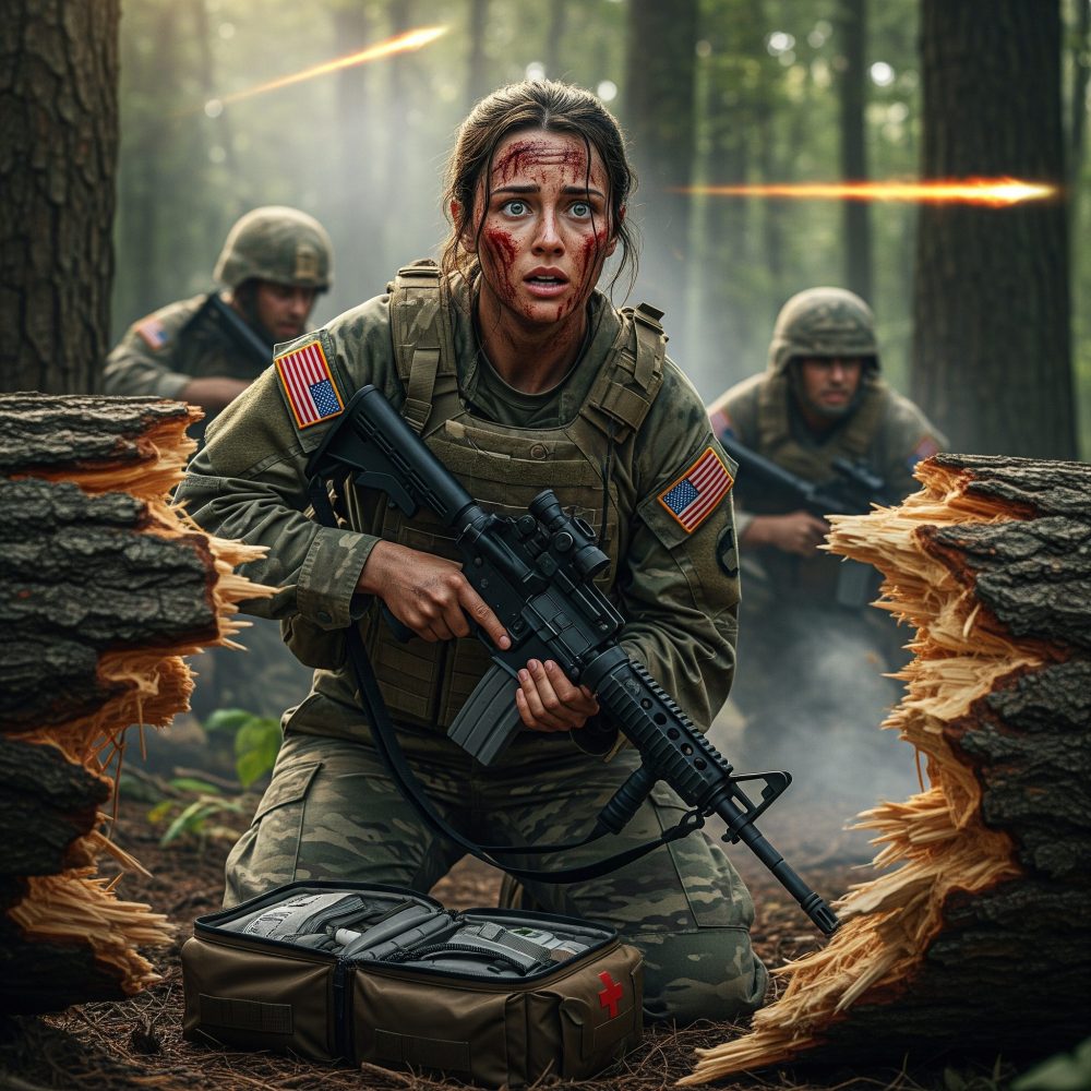 I can still hear their laughter echoing inside my helmet. “Medics don’t fight,” Corporal Hayes joked, shaking his head as I knelt beside Private Lucas, pressing gauze into his bleeding thigh. My name is Emily Carter, combat medic, U.S. Army. I’d heard the line a hundred times since basic training. I always ignored it. My job was to save lives, not take them.