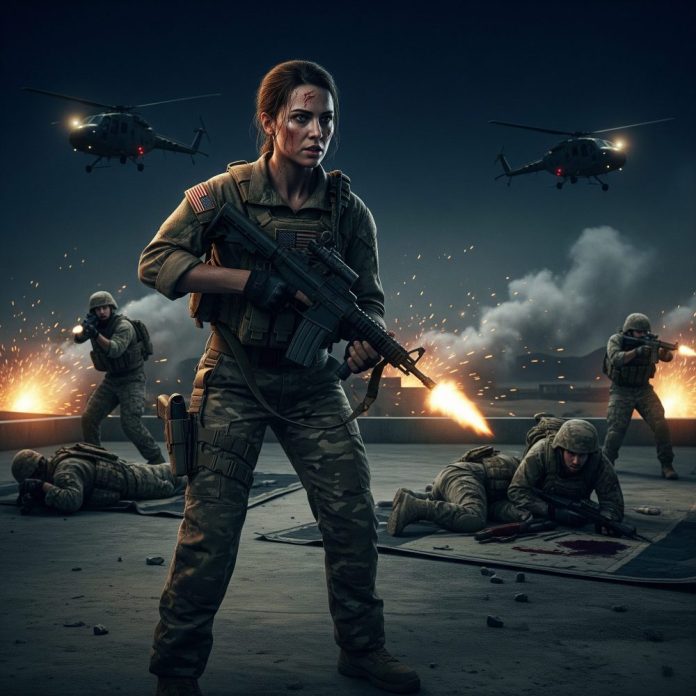 My name is Rachel Carter, callsign Falcon, and I didn’t respond. I never did. I tightened my gloves instead, checking my rifle for the third time as red warning lights flashed across the cabin. The mission briefing had been clear: a high-value target, heavily guarded compound, zero margin for error. I was the point scout and overwatch—eyes first, shots last.