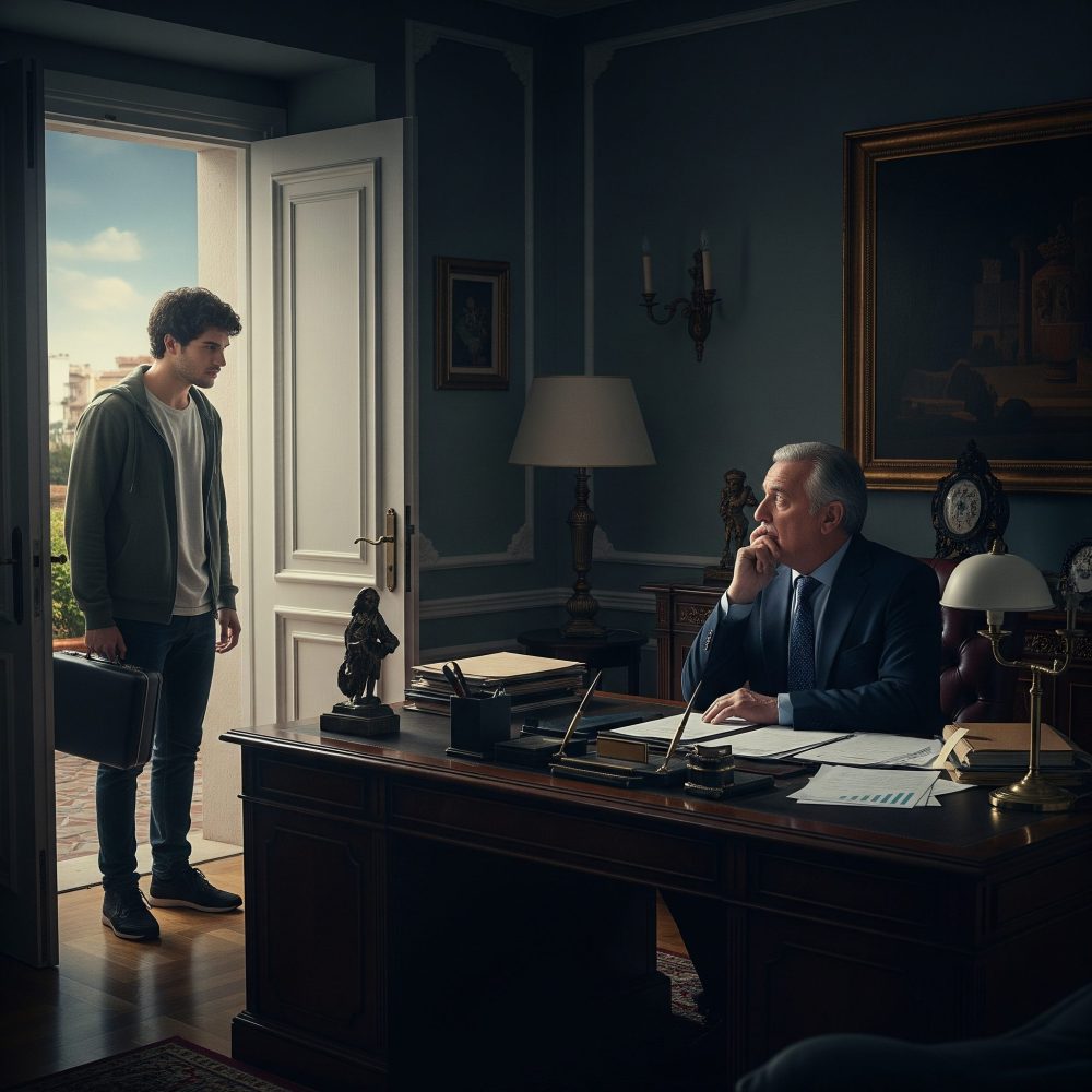 ¡No puedo creerlo! Papá, ¿cómo pudiste hacerme esto?” grité mientras cerraba la puerta detrás de mí, con solo una maleta en la mano. Mi nombre es Javier Morales y toda mi vida pensé que mi relación con mi padre, Ricardo, era complicada pero estable. Sin embargo, todo cambió cuando me llamó a su oficina para informarme que me excluía de la herencia de 96 millones de euros que él había conseguido con años de esfuerzo. Su argumento fue frío y directo: “Javier, no confío en ti para manejar nada de esto. Necesito que te vayas de la casa y construyas tu propia vida.”