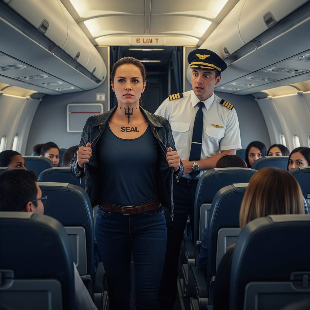 I nodded, jaw tight. I’d learned long ago when to stay silent. I adjusted my jacket, but the movement exposed the SEAL trident tattoo on the side of my neck—ink I rarely showed in public. I didn’t expect it to matter. To them, I was just another woman being quietly humiliated at 35,000 feet.