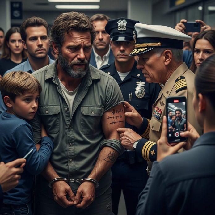 I was already in handcuffs when the police officer sneered, “You think impersonating a SEAL will get you out of this?” His grip tightened as if he wanted the whole crowd at the airport terminal to hear. My eight-year-old son, Ethan, clung to my jacket, his fingers trembling against my sleeve. People stared. Some whispered. Others filmed with their phones. To them, I was just another single dad caught lying about a military past I had no right to claim.