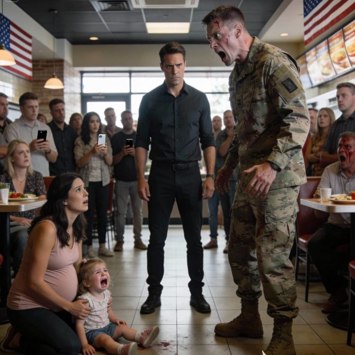 The restaurant went completely silent. Forks stopped mid-air. Conversations died. Every eye moved from my daughter on the floor to me—and then back to the trembling man who suddenly looked like he wanted to disappear.