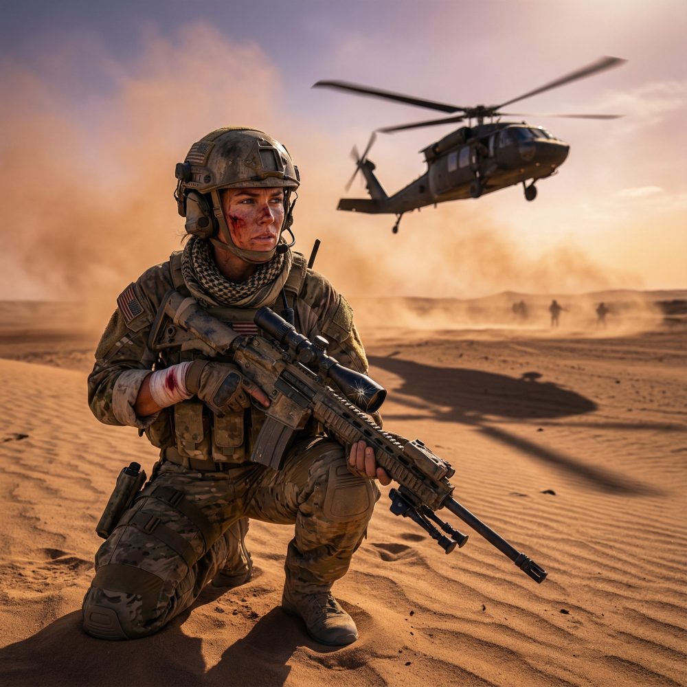 “Leave her now!” someone shouted over the radio as the helicopter began lifting off. The sound of the rotors drowned everything else, and the shadow of the bird ripped away from me across the burning desert sand. I was on my knees, rifle pressed to my shoulder, scope shattered from a blast that hit too close. My lips were split and bleeding. My last magazine was half empty.