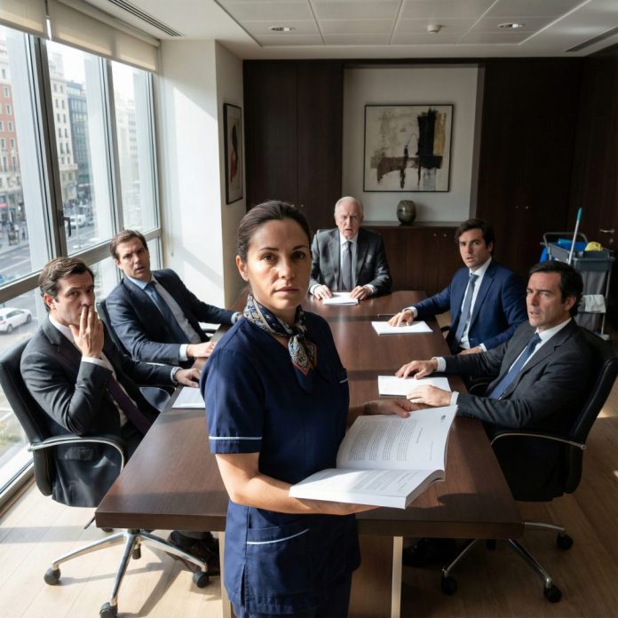 El ambiente estaba cargado. Carpetas abiertas, contratos desordenados, rostros cansados. Yo solo era Lucía Herrera, la mujer de la limpieza que trabajaba allí desde hacía seis años, invisible para todos. Pero mientras barría, había escuchado cada discusión, cada excusa, cada contradicción.