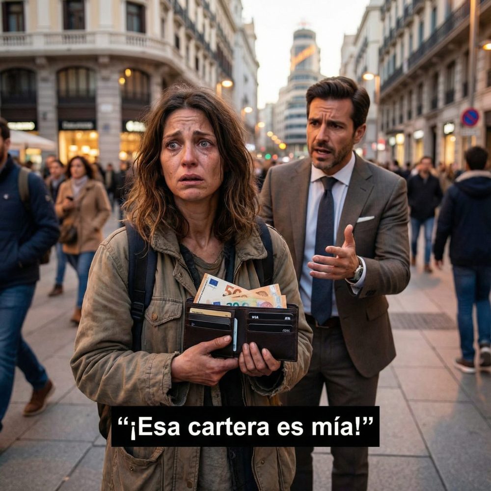 Caminaba por la calle buscando trabajo, con el estómago vacío y la dignidad al límite, cuando vi una billetera tirada en el suelo, justo frente a una cafetería del centro de Madrid. Llevaba semanas durmiendo en albergues, llamándome Lucía Morales, treinta y dos años, currículum arrugado en la mochila y demasiadas puertas cerradas. Me agaché pensando que quizá solo había unas monedas, algo para comer ese día.