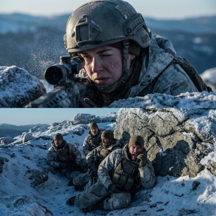 I scanned the slope through my scope and immediately understood why they were collapsing. The enemy had the high ground on the opposite ridge and a machine gun dug into a snow-camouflaged nest. Every time the SEALs tried to move, the gun pinned them back down. The wind howled sideways, gusting hard enough to push my barrel off target if I wasn’t careful. My gloves were stiff with ice. My hands shook anyway.