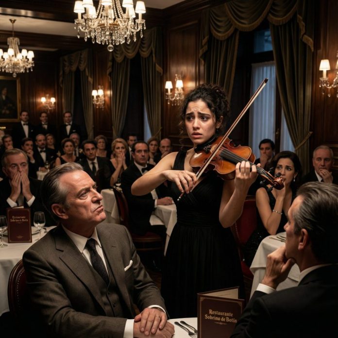 Nunca olvidaré el día en que me obligaron a tomar el violín. Me llamo Lucía Morales, y en ese entonces solo era una camarera más en un restaurante de lujo en Madrid, donde la sonrisa era obligatoria y la dignidad opcional. Mis manos temblaban mientras sostenía el instrumento frente a decenas de clientes elegantes. Al fondo del salón estaba Alejandro Beltrán, un millonario conocido por su arrogancia y su desprecio hacia quienes servíamos mesas.