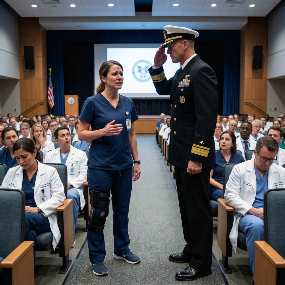 That morning, the hospital auditorium was packed. Administrators, donors, doctors—everyone gathered for a ceremony honoring military veterans. I hadn’t planned to attend. I only came because my supervisor asked me to help escort guests. As I moved toward the exit, still hearing the echoes of mockery behind me, a sudden sound cut through the room.