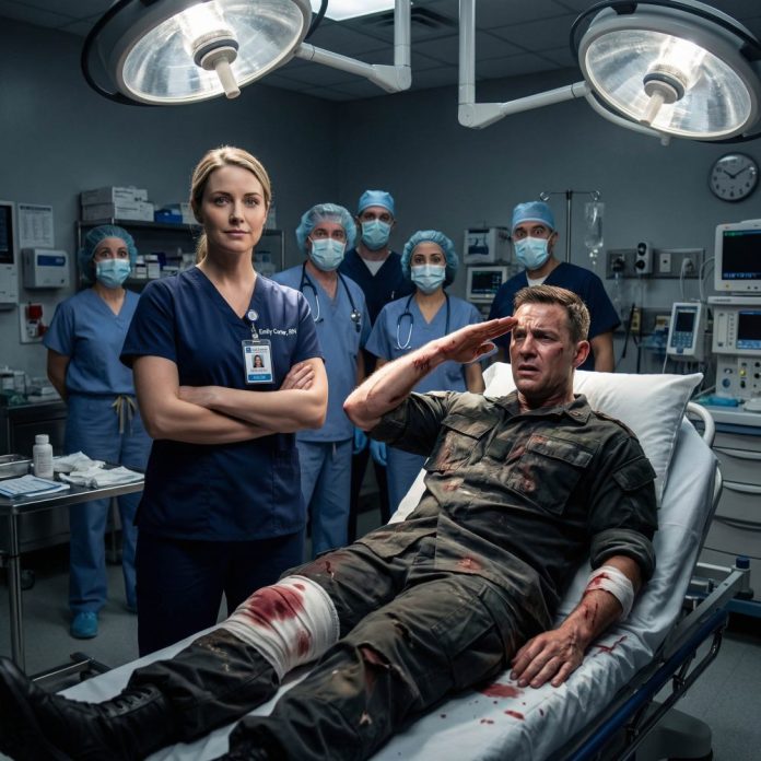 The night shift was chaos. Sirens outside. Stretchers rolling in. Then they brought Commander Jason Reed, a Navy SEAL shot during a joint operation overseas. He was barely conscious, chest wrapped in blood-soaked bandages, monitors screaming warnings no one wanted to hear. Doctors crowded around him, arguing dosages, calling for scans.