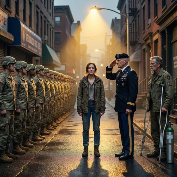 One hundred soldiers stood in perfect formation along the sidewalk outside my building—combat boots aligned, uniforms crisp, faces forward. Neighbors were already peeking out their windows.