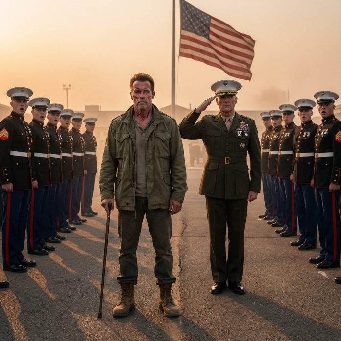 Then he did something I never expected. He raised his hand in a crisp salute. The entire formation followed instantly. Dozens of Marines, standing at attention—for me.
