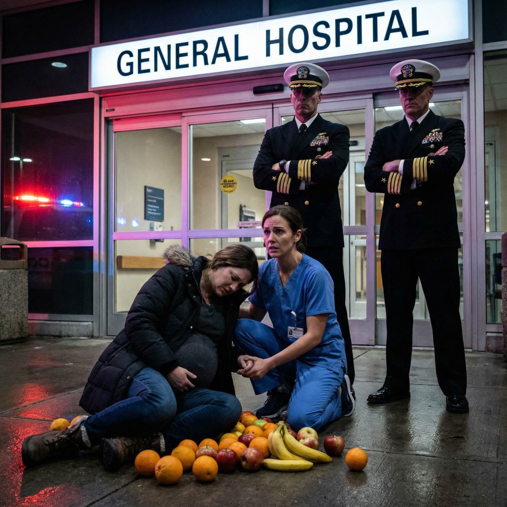 The bag of fruit she had just bought from the supermarket slipped from her hand, apples and oranges rolling across the concrete as she collapsed at the hospital gate. She was nearly nine months pregnant, her breathing shallow, her face pale in a way that instantly told me this was not just exhaustion. I’m a nurse—my name is Emily Carter—and I didn’t hesitate. I dropped to my knees, checked her pulse, and called for a wheelchair that never came. So I wrapped my arms around her and dragged her inside myself.