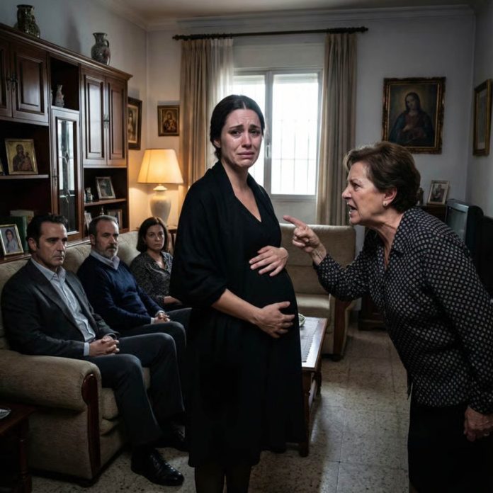 El día después del funeral de mi esposo Javier, la casa todavía olía a flores marchitas y a silencio. Yo, Lucía Morales, con ocho meses de embarazo, apenas podía mantenerme en pie. Aún llevaba el vestido negro cuando la puerta se abrió de golpe. Clara, la hermana menor de Javier, entró sin pedir permiso, con los tacones golpeando el suelo como si marcara territorio.