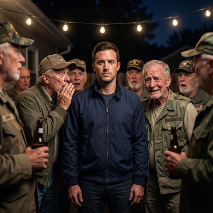 We were standing in his backyard in San Diego, a place filled with medals, flags, and men who still carried themselves like war never really left them. Retired SEALs, contractors, old commanders—friends of my father who had spent their lives proving how tough they were. I stood there in a plain navy jacket, hands relaxed, face neutral. I’d learned a long time ago that silence unsettles people more than bravado.