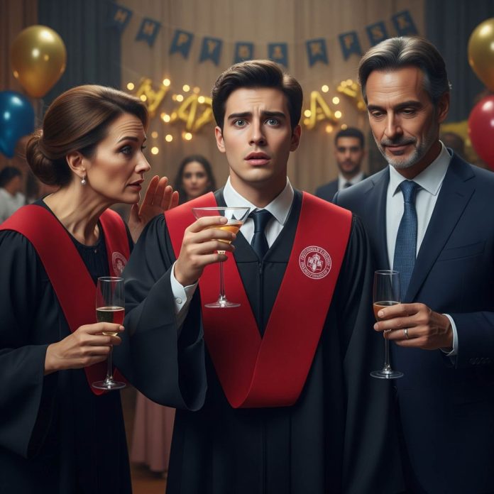 El salón estaba lleno. Música suave, risas medidas, copas brillando bajo luces cálidas que fingían una atmósfera acogedora. Sonreíamos para las fotos como la familia perfecta. Yo aún llevaba la toga puesta cuando mi madre se acercó para “acomodarme el cuello”. Sus manos eran frías. Sin dejar de sonreír para la cámara, se inclinó y me susurró al oído, con una calma cruel: