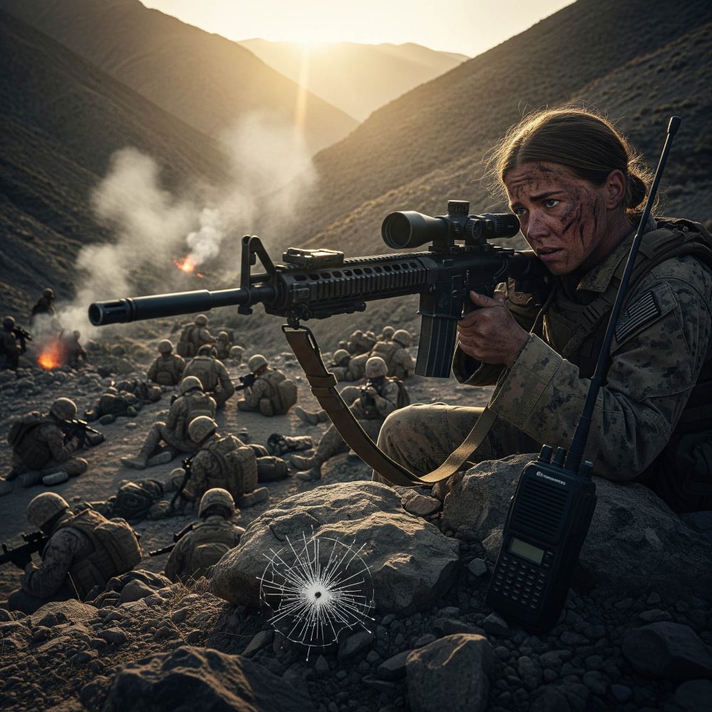 We were inserted before dawn—thirty-four Marines, cut off from armor, air support delayed, terrain worse than the maps promised. I was the overwatch sniper, paired with my spotter, Corporal Jake Reynolds, positioned high on a rocky ridge. From up there, I could see everything: the narrow valley floor, the half-collapsed villages, and the ambush waiting to happen.