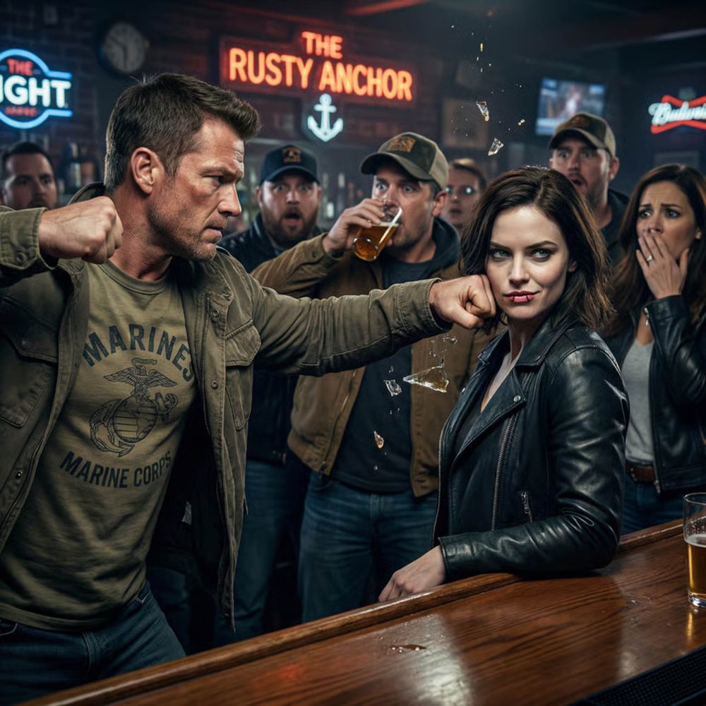 “Relax, sweetheart,” the Marine sneered, wiping his knuckles on his jeans. The bar roared like it was a cheap comedy club instead of a place where things could turn deadly fast.