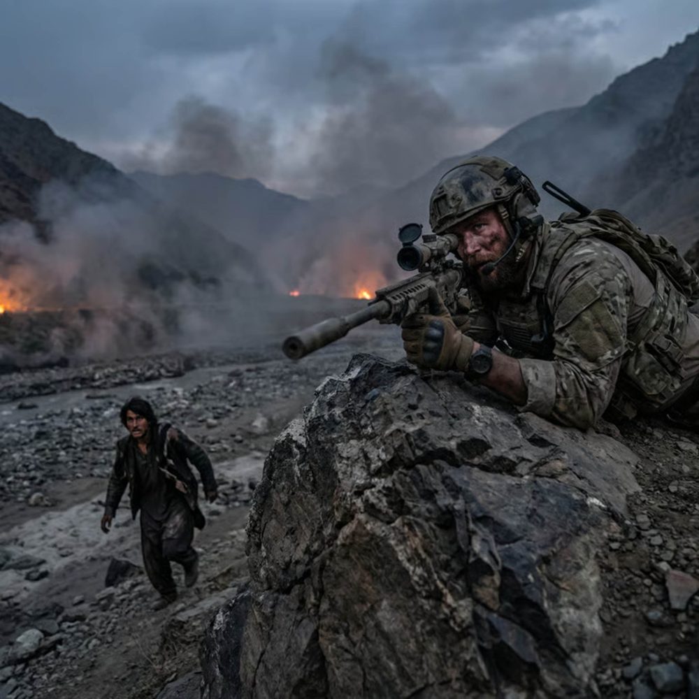 The radio went quiet so suddenly it felt unnatural, like the world itself had stopped listening. One second, Command was barking updates into my ear. The next, nothing but static and the distant thud of artillery echoing through the valley. Smoke rolled low across the rocks, thick and bitter, burning my lungs with every breath. I was lying prone on a ridge line, overlooking a narrow dirt road that cut through enemy territory like a scar.