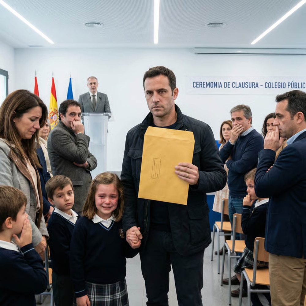 El murmullo cesó de golpe. El salón quedó en un silencio incómodo. Javier caminó hasta el centro, frente a los padres, los niños y el director del colegio. Abrió el sobre y sacó varios documentos.