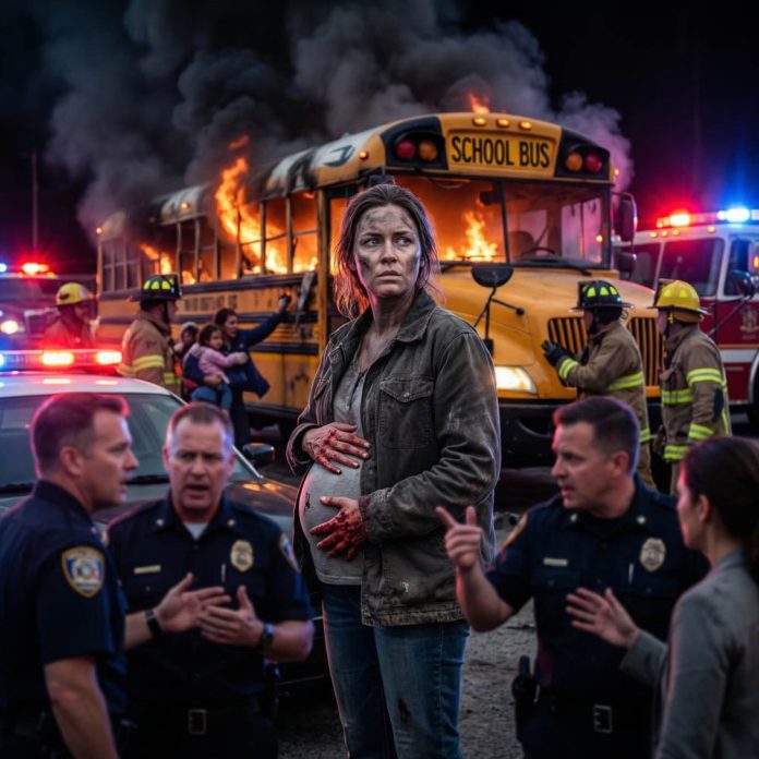 The school bus lay crushed and burning across two lanes of Maple Ridge Road, its front end wrapped around a guardrail like a broken ribcage. Black smoke poured into the winter air. Inside, children were screaming—high, panicked sounds that cut straight through me.
