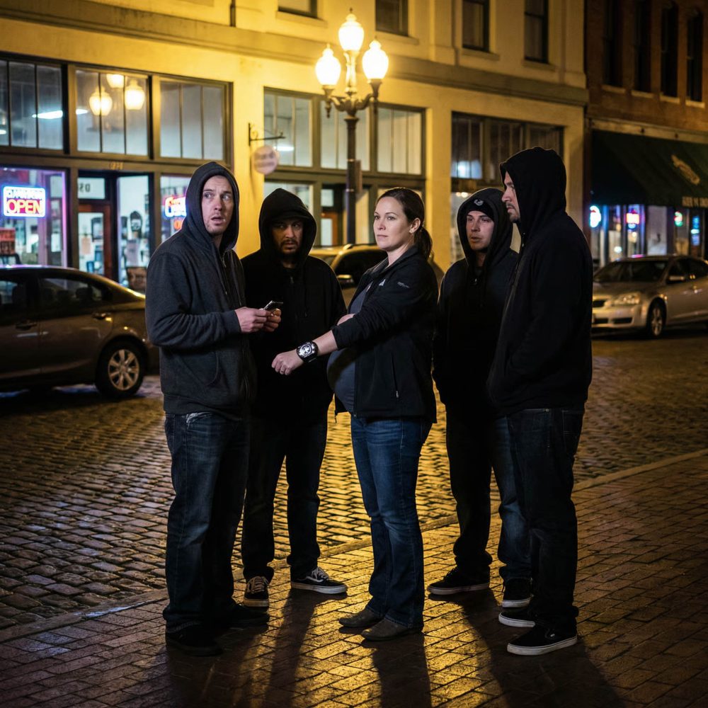 Four men stepped out from between two parked cars. Not kids. Grown men. Hoodies pulled low, voices calm in the way that told me this wasn’t their first time.