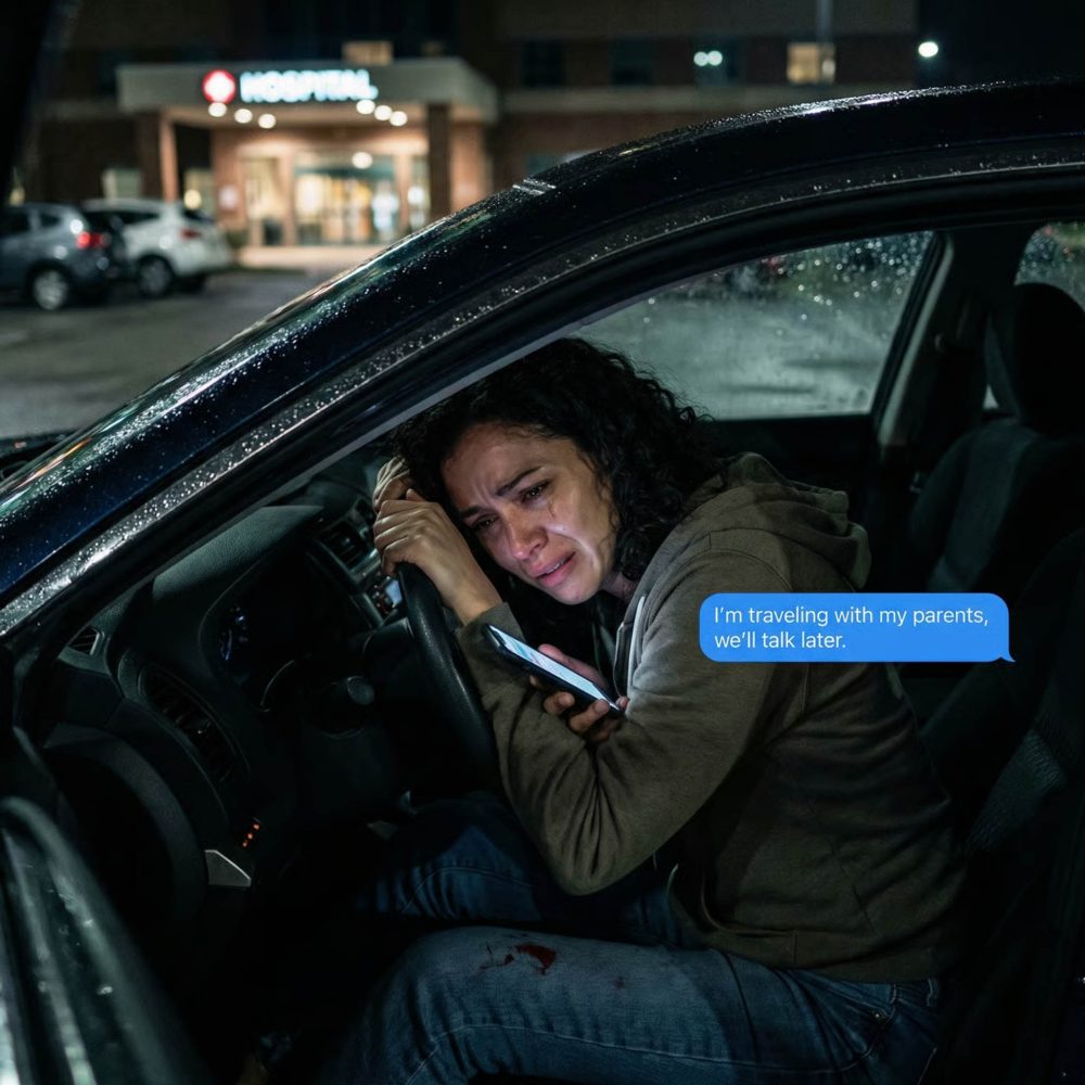 “¡Respira, empuja!”, gritaba la doctora mientras yo apretaba el volante del coche, empapada de sudor y sangre. Mi nombre es Lucía Morales, y estaba dando a luz sola en el estacionamiento de un hospital de Valencia. Mi marido, Javier Ruiz, no contestaba el teléfono. Con manos temblorosas abrí su último mensaje: “Me voy de viaje con mis padres. Luego hablamos.”