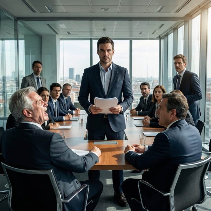Entonces, uno de los abogados se levantó lentamente y pidió la palabra. “Antes de continuar, hay un asunto legal pendiente que debe aclararse”, dijo con voz firme. El ambiente cambió de inmediato. Colocó varios documentos sobre la mesa y pidió que se proyectaran en la pantalla. Mi nombre apareció en letras grandes.