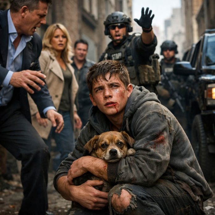 He checked my head wound and nodded to another teammate. Someone else gently picked up the shaking dog and wrapped him in a jacket. The contrast was unreal—seconds ago, I was nothing. Now, people moved like my pain mattered.
