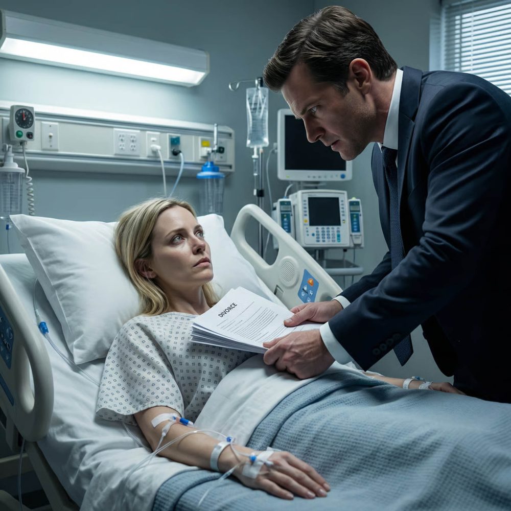 As the door closed behind him, a nurse rushed in, asking if I was okay. I nodded slowly, staring at the divorce papers still lying on my bed.
