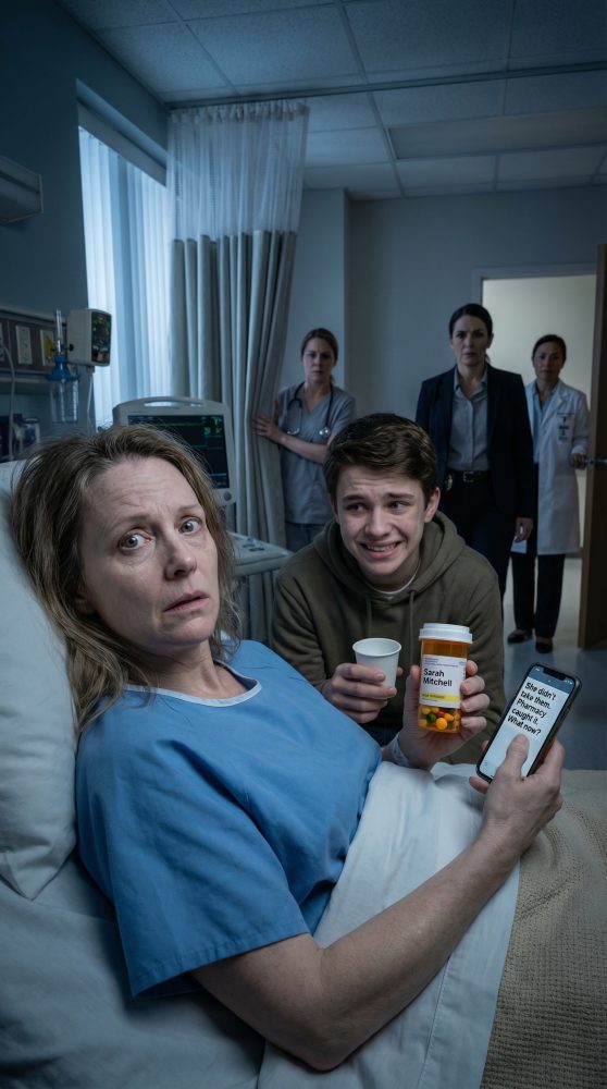 Volvió una farmacéutica del hospital, una mujer joven llamada Priya, con el frasco sellado dentro de una bolsa transparente como evidencia. “Señora Mitchell,” dijo con suavidad, “estas tabletas no coinciden con su receta. Son un beta bloqueador de dosis más alta. Lo suficiente para bajarle la presión rápidamente, sobre todo si no lo esperaba.”
