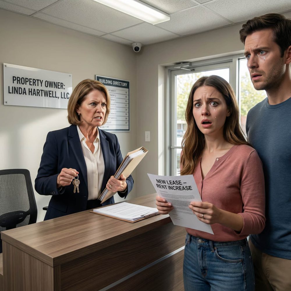 Dos semanas después, Ashley entró a la oficina de arrendamientos para quejarse de un problema de mantenimiento… y se congeló. Había un nuevo letrero sobre el mostrador: