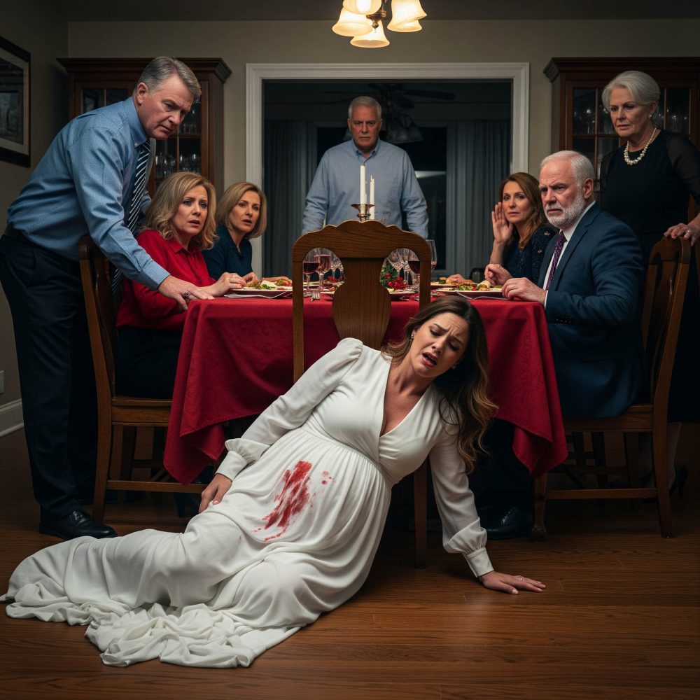 La cena de Navidad en casa de la familia Ortega parecía una escena perfecta: luces cálidas, risas forzadas, copas elevadas. Yo estaba de siete meses, con el vestido apretado contra mi vientre, intentando respirar con calma. Mi padrastro, Ricardo Ortega, presidía la mesa como siempre, con esa sonrisa cortante que solo él sabía usar. Cuando caminé para sentarme en la silla vacía junto a mi esposo Daniel, él se levantó de golpe.
