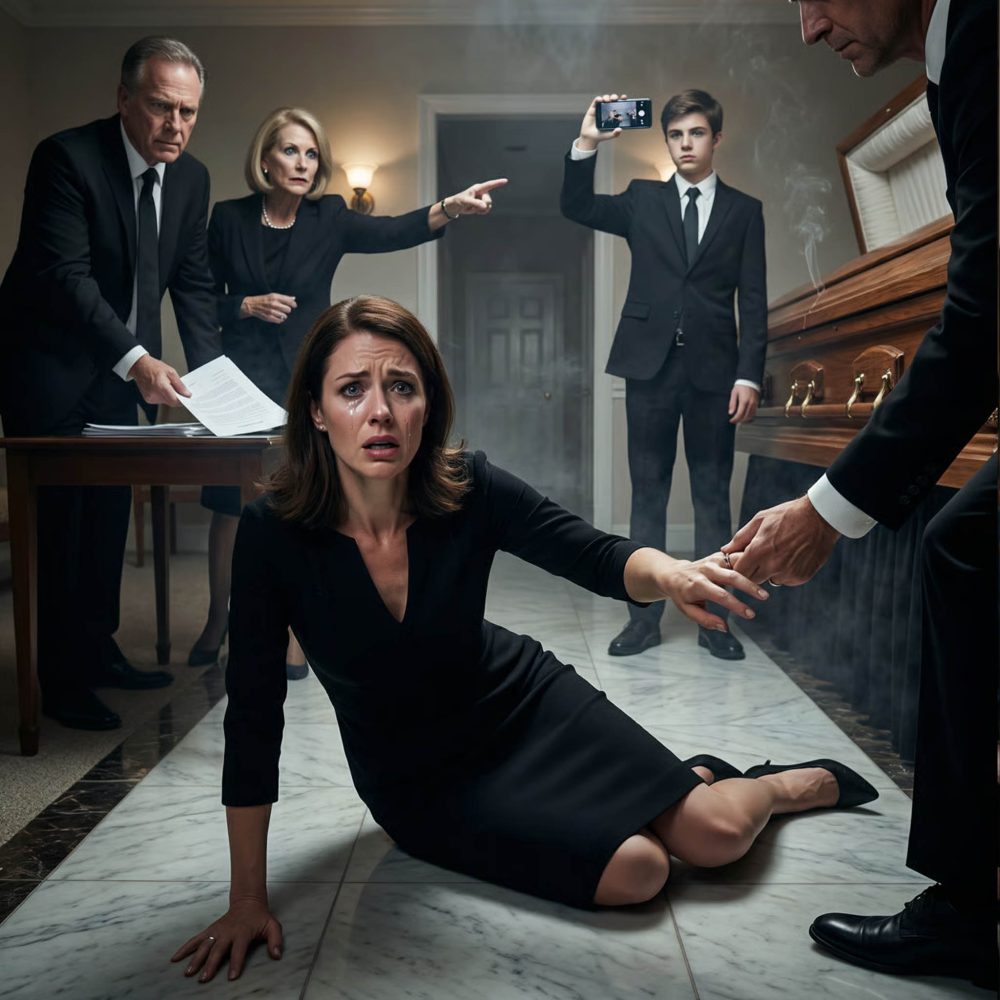 El olor a incienso aún se aferraba a la capilla funeraria cuando las puertas se azotaron y la familia de mi esposo entró como si también les perteneciera el aire. Trajes negros, zapatos brillantes, ojos secos. La tía Linda iba al frente, los labios apretados, con una carpeta tan gruesa que parecía un arma.