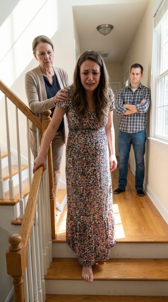 Todavía oigo el chasquido de mi palma contra las escaleras cuando mi suegra, Diane Reed, me empujó. Un segundo estaba en el rellano de arriba y al siguiente mis pies ya no estaban. Recuerdo el pasamanos rozándome las costillas, el deslizamiento nauseabundo y la voz de mi marido Jason flotando desde abajo.