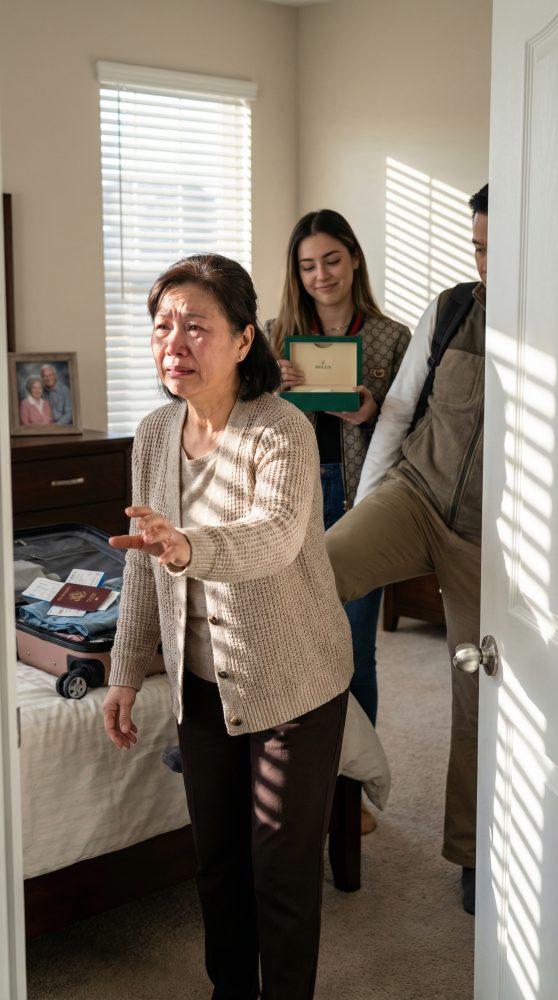 Entré a nuestro dormitorio y vi a mi nuera, Brianna, sosteniendo el Rolex como si fuera un trofeo. Mi yerno, Tyler, estaba detrás de ella con una bolsa de viaje abierta sobre la cama.
