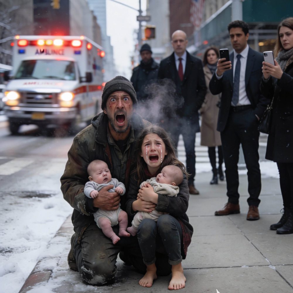 I was counting pennies in my tin cup when I saw her—barefoot, shaking, cradling twin babies against her chest. Her hair was tangled like she’d slept in the wind, and her hoodie was too thin for the February bite. She couldn’t have been older than twelve.