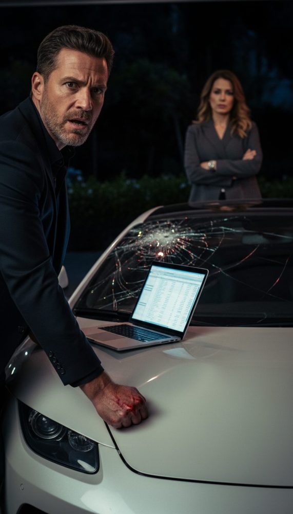 I slammed my fist into the hood. The sound was violent—metal buckling, alarms screaming, glass fracturing. Once wasn’t enough. I hit it again. And again. Pain exploded through my hand, but I barely felt it.