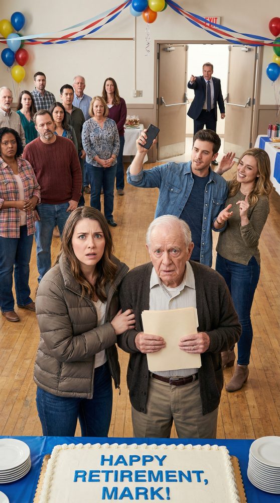 El estacionamiento del centro comunitario estaba lleno. En las ventanas colgaban banderines de papel: ¡FELIZ JUBILACIÓN, MARK! Como si todo el vecindario estuviera orgulloso de él. Debería haber sentido algo cálido al entrar. En cambio, el estómago se me cayó en cuanto lo escuché.