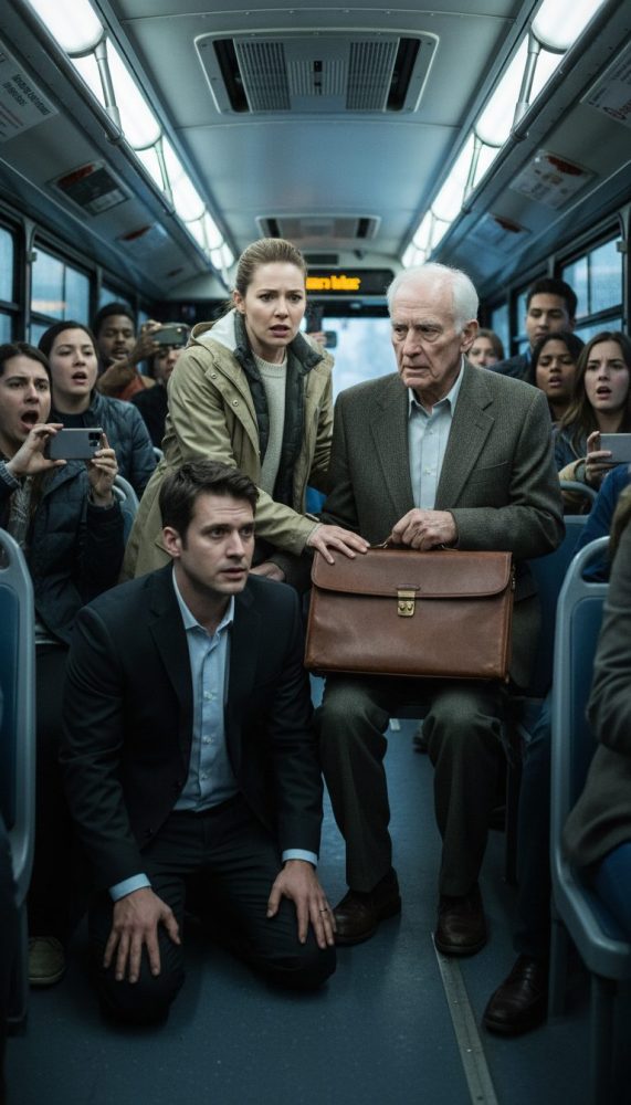 The bus felt like it had turned into a courtroom. Every head angled toward us, every phone hovering like it might record. Derek stayed on his knees, shoulders tense, breathing hard.
