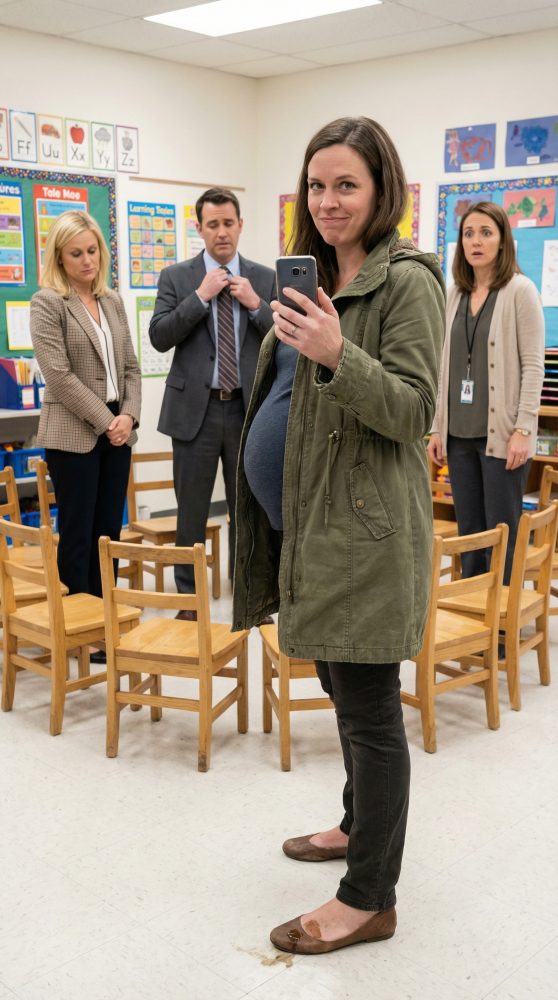 I walked into the parent-teacher meeting with my belly leading the way, one hand bracing my lower back and the other clutching a thin folder of paperwork. The hallway outside Room 214 smelled like lemon cleaner and expensive perfume. Most of the parents looked like they stepped out of a catalog—pressed blazers, bright teeth, watches that caught the fluorescent lights. I looked like what I was: a woman seven months pregnant, in a thrifted coat, flat shoes, and a scarf hiding a stain I couldn’t wash out.
