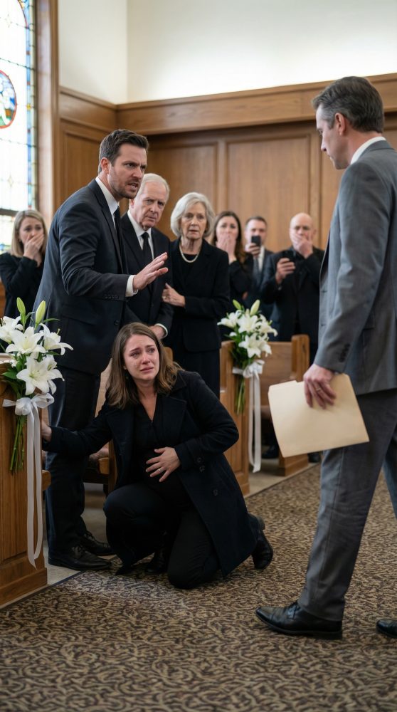 My name is Emily Carter, and two hours ago I stood between the caskets of Mom and Dad—gone in a highway crash that still didn’t feel real. I was six months pregnant, dizzy from grief and incense, trying to keep my breathing quiet so no one would hear how close I was to breaking.