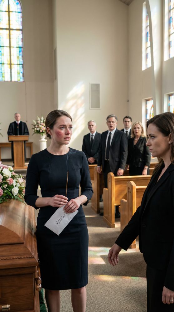 Madison se queda inmóvil, la carta arrugada temblándole en la mano. La capilla se siente más pequeña, pesada por los lirios y por el juicio de todos.