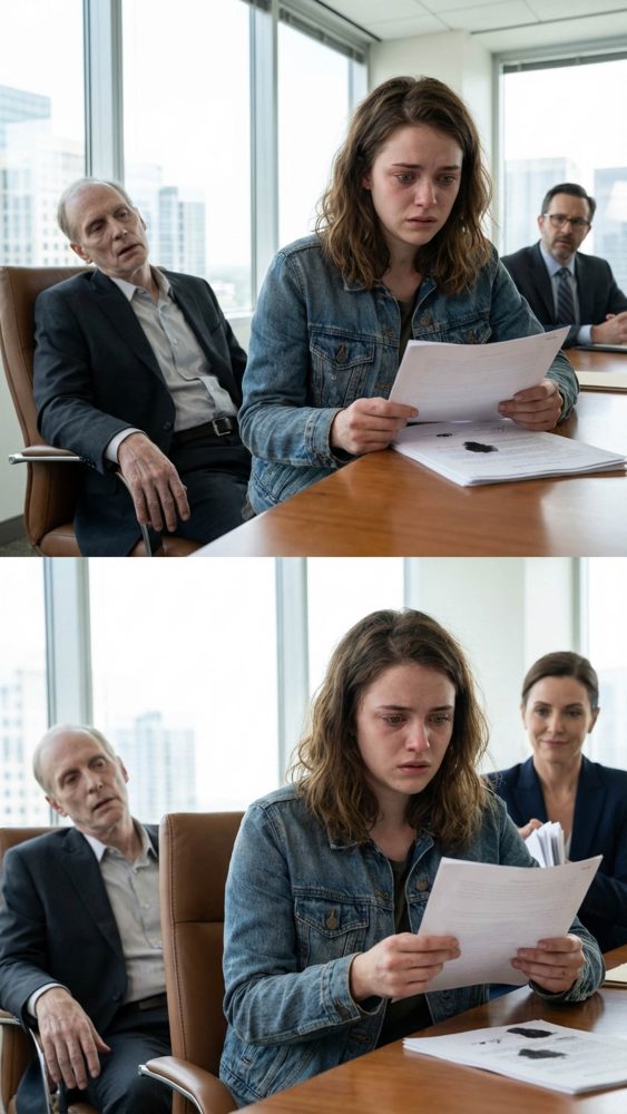 I turned to Dad. He was sitting beside me, shoulders slumped, his tie crooked because I’d helped him dress. His eyes were glassy, frustrated. When I asked him earlier if he remembered signing anything, he’d tried to answer, but the words came out tangled. He lifted his trembling right hand now as if to speak with it, but it only shook harder.